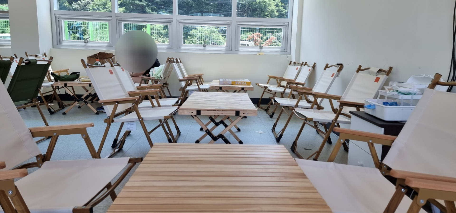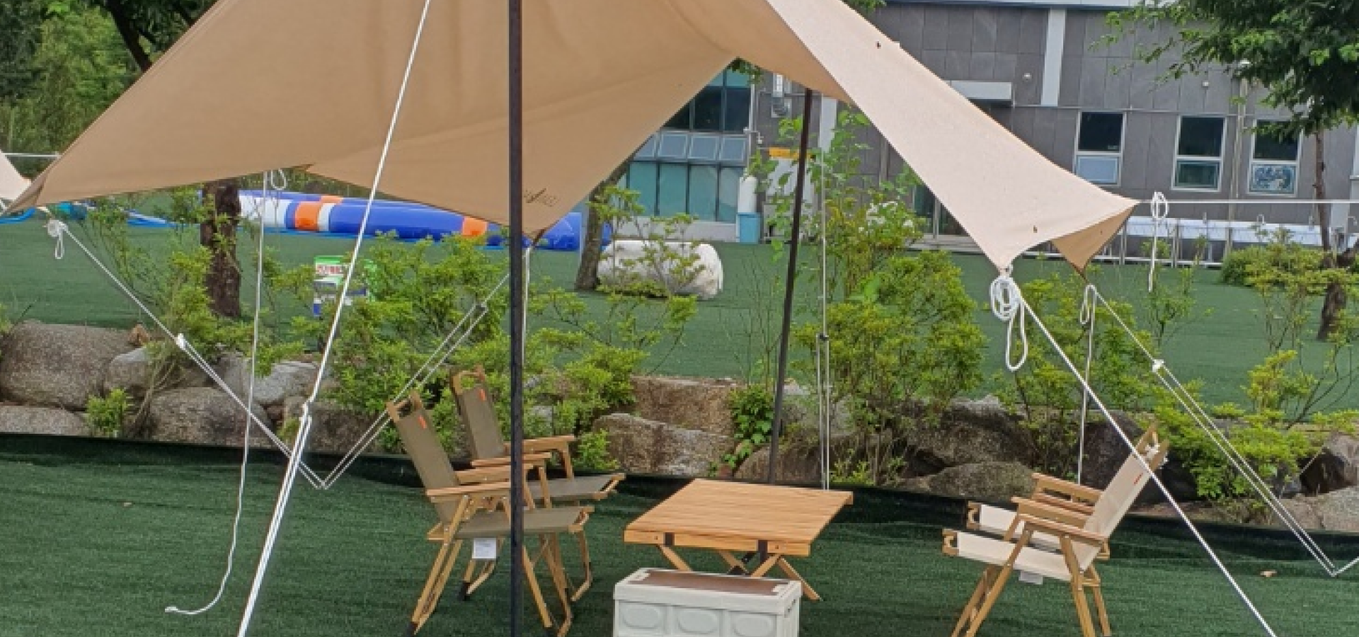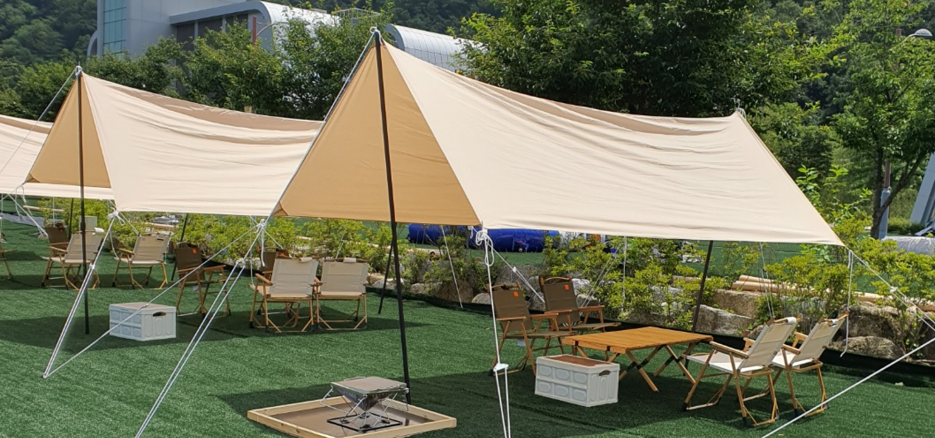 취사 가능 / 화로대 사용 가능 텐트+타프테이블+의자4개+구이바다세트+코펠4인+집게 가위 국자